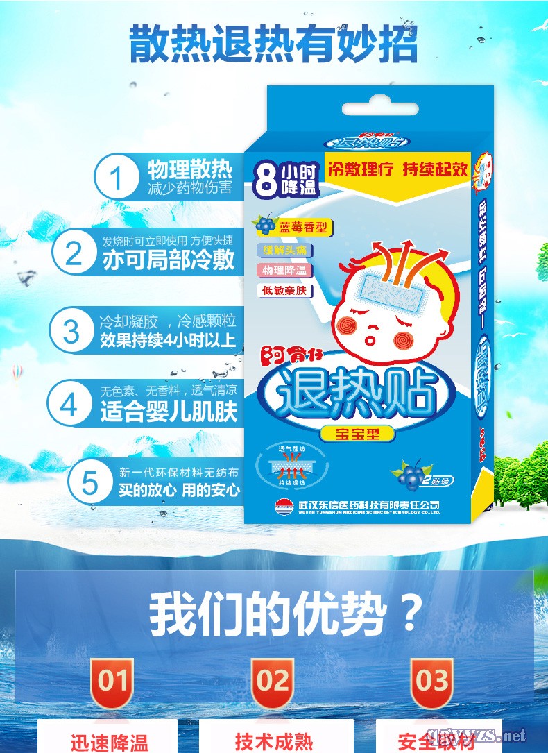 | 產(chǎn)品賣(mài)點(diǎn) | 保護(hù)大腦、快速降溫、發(fā)燒應(yīng)急 無(wú)色素、**性、***、不過(guò)敏 |