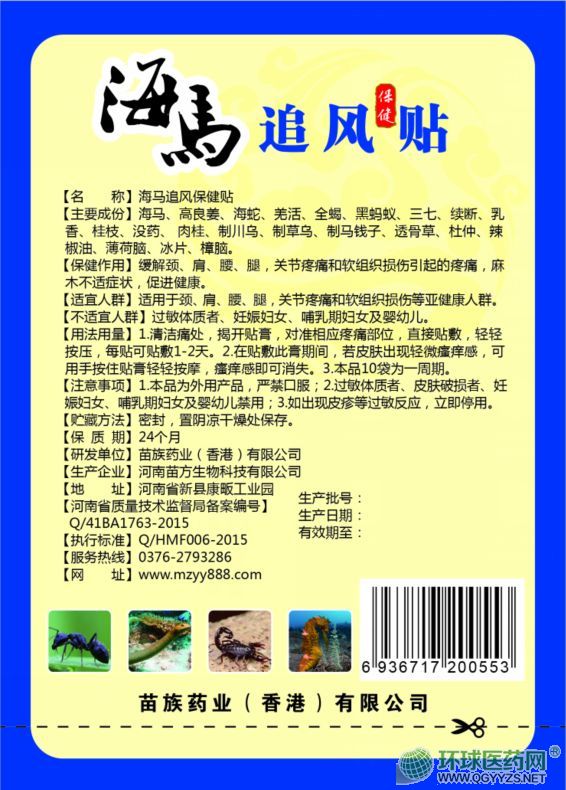 | 通用名稱(chēng) | 海馬追風(fēng)貼 |