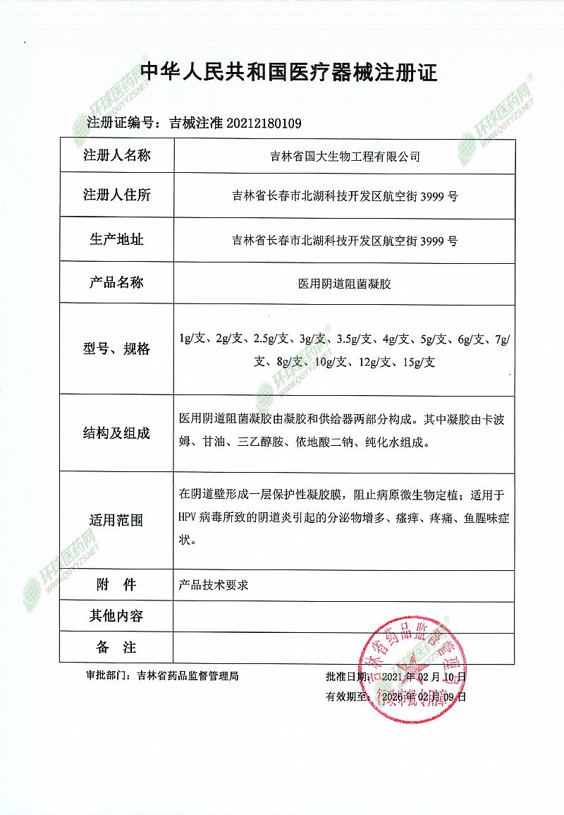 | 產(chǎn)品名稱 | 醫(yī)用陰道阻菌凝膠 |