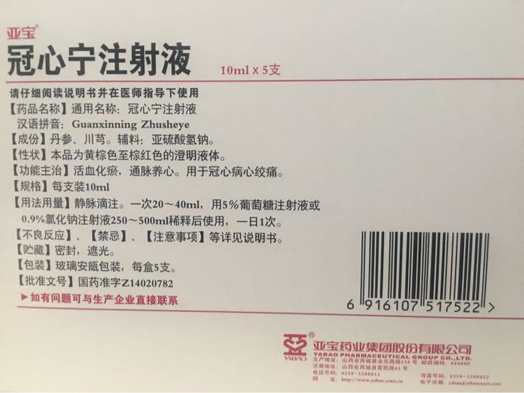 | 通用名稱 | 冠心寧注射液 |