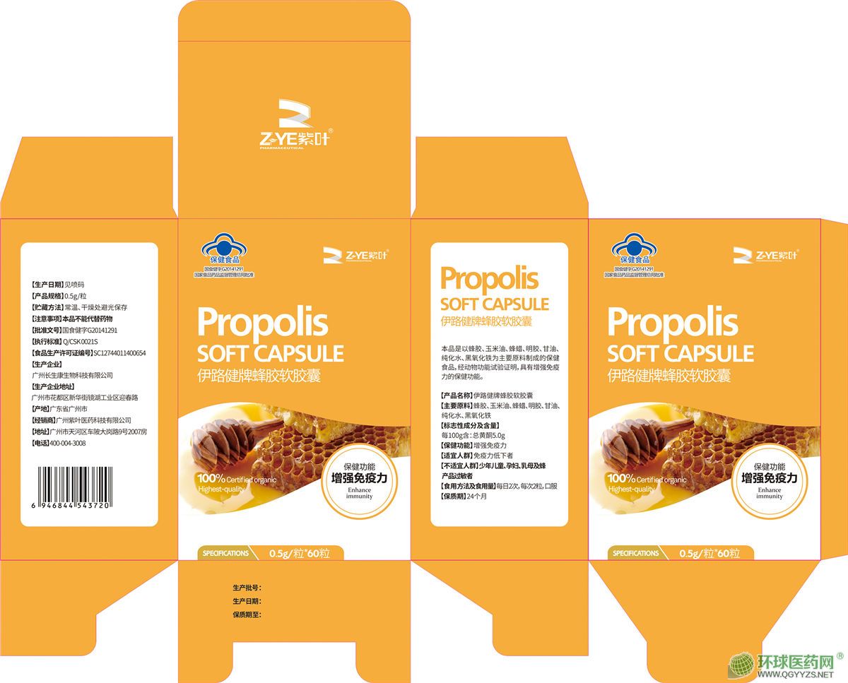 產(chǎn)品名稱(chēng): 伊路健牌蜂膠軟膠囊