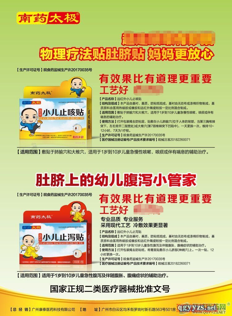 | 產(chǎn)品賣點(diǎn) | 南藥太極:遠(yuǎn)紅外小兒止咳貼.遠(yuǎn)紅外小兒止瀉貼!二類器械全國(guó)2家;物理療法、:診所.連鎖.起量快遠(yuǎn)紅外止咳貼、腹瀉貼全國(guó)兩家生產(chǎn),資料齊全 誠(chéng)招區(qū)域代理 療效確切、代理方便;效果好、廠家低價(jià)供貨;經(jīng)濟(jì)實(shí)惠、備受患者的青睞; 真誠(chéng)而長(zhǎng)遠(yuǎn)的合作態(tài)度;專業(yè)營(yíng)銷隊(duì)伍和成熟的區(qū)域銷售網(wǎng)絡(luò);較強(qiáng)的市場(chǎng)推廣能力; |
