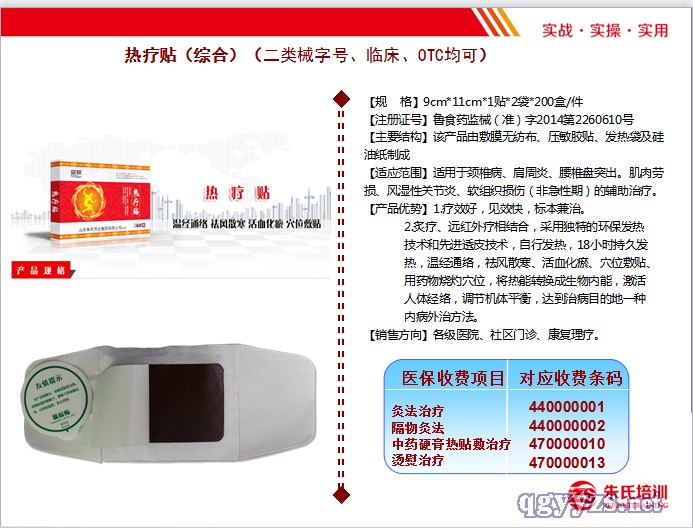 | 補(bǔ)充說明 | 【規(guī) 格】9cm*11cm*1貼*2袋*200盒/件 【注冊(cè)證號(hào)】魯食藥監(jiān)械(準(zhǔn))字2014第2260610號(hào) 【主要結(jié)構(gòu)】該產(chǎn)品由敷膜無紡布、壓敏膠貼、發(fā)熱袋及硅油紙制成 【適應(yīng)范圍】適用于頸椎病、肩周炎、腰椎盤突出。肌肉勞損、風(fēng)濕性關(guān)節(jié)炎、軟組織損傷(非急性期)的輔助治療。 |