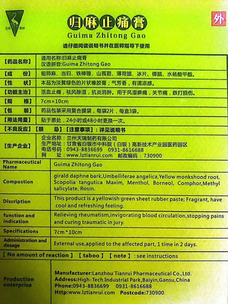 歸麻止痛膏