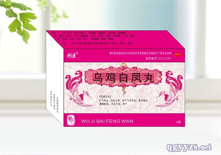 | 主要成分 | 烏雞(去毛爪腸)、鹿角膠、醋鱉甲、煅牡蠣、桑螵蛸、人參、黃芪、當歸、白芍、醋香附、天冬、甘草、地黃、熟地黃、川芎、銀柴胡、丹參、山藥、芡實(炒)、鹿角霜。輔料:蜂蜜。 |