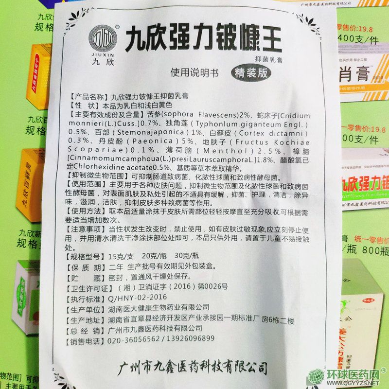 | 產(chǎn)品名稱 | 九欣強(qiáng)力鈹慷王抑菌乳膏 |