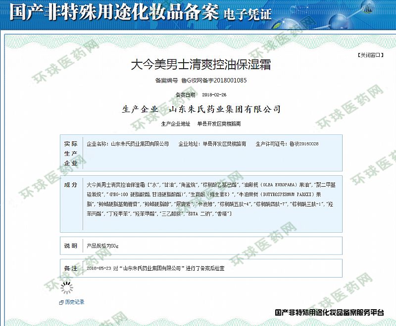 批準(zhǔn)文號(hào): 魯妝20160028 【驗(yàn)證真?zhèn)?/a>】
