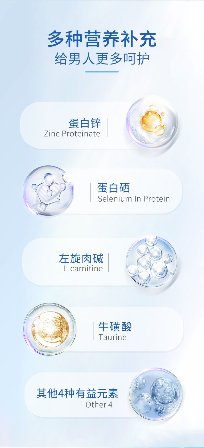 | 主要成分 | 左旋肉堿、蛋白鋅、蛋白硒、檸檬酸、維生素C、;撬、葉酸等 |