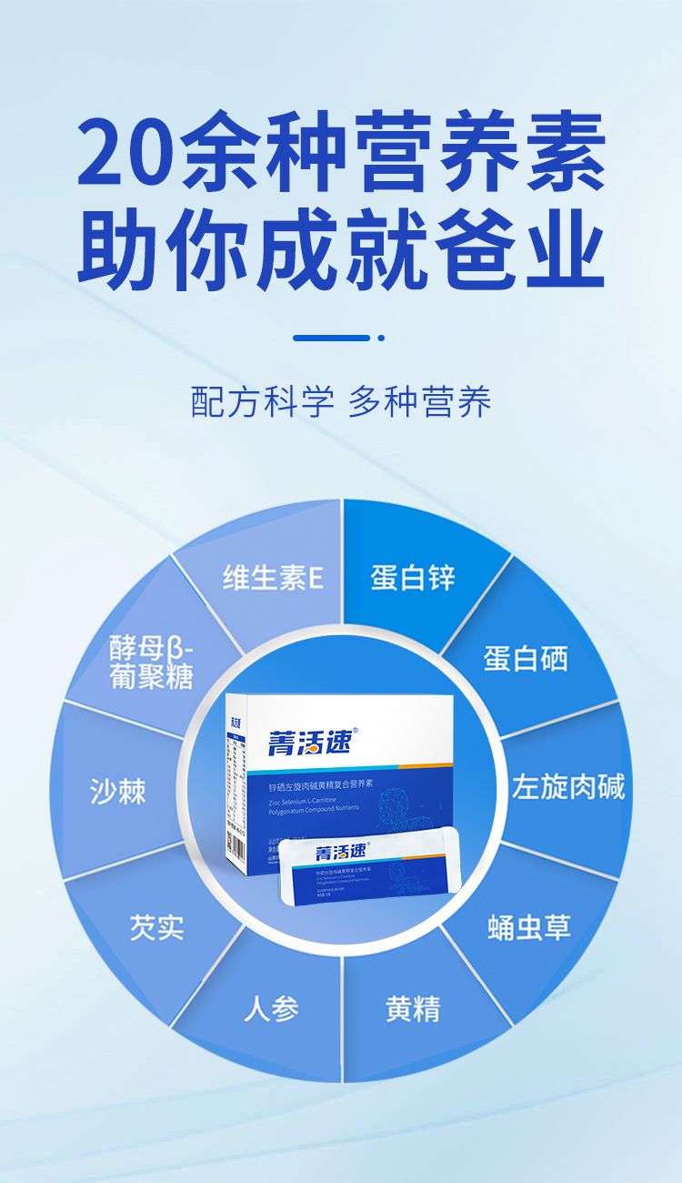 | 主要成分 | 左旋肉堿、富鋅富硒蛋白粉、蛹蟲草、瑪咖、紅棗粉、檸檬酸、維生素C、;撬、葉酸等 |