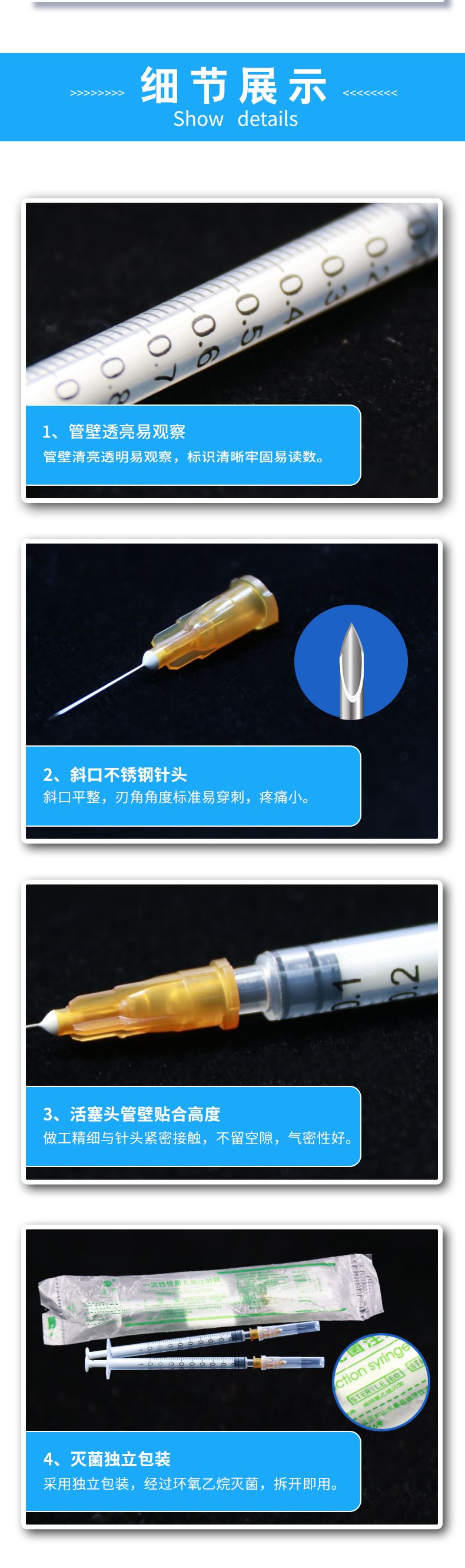 | 產(chǎn)品賣點(diǎn) | 本產(chǎn)品適用于抽吸液體或在注入液體后立即注射用。原材料為:外套、芯桿和針座材料為醫(yī)用級(jí)聚丙烯,護(hù)套材料為醫(yī)用聚乙烯,活塞材料為異戊合成橡膠,針管 材料為醫(yī)用不銹鋼,粘合劑材料為環(huán)氧樹脂,潤滑劑材料為二甲基硅氧烷。 注意事項(xiàng) |