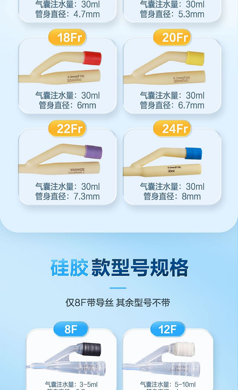 | 產(chǎn)品規(guī)格 | 單腔 6Fr、 8Fr、10Fr、12Fr、14Fr;雙腔 6Fr、 8Fr、10Fr、12Fr |