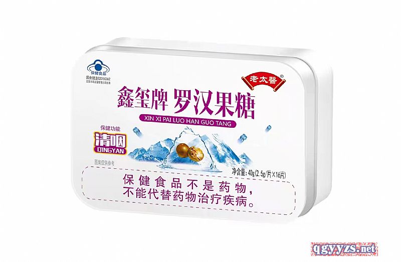 | 補(bǔ)充說(shuō)明 | 本品是以羅漢果提取物、薄荷腦、薄荷油、白砂糖、蜂蜜、葡萄糖漿為主要原料制成的保健食品,經(jīng)動(dòng)物和人體試食功能試驗(yàn)證明,具有清咽的保健功能 |