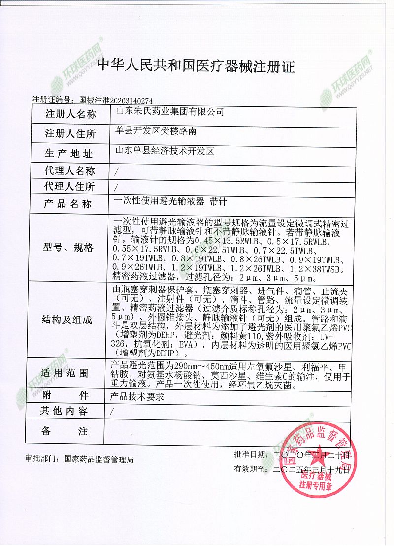| 其它說明 | 本產(chǎn)品適用于光敏類藥物的輸注。 |
