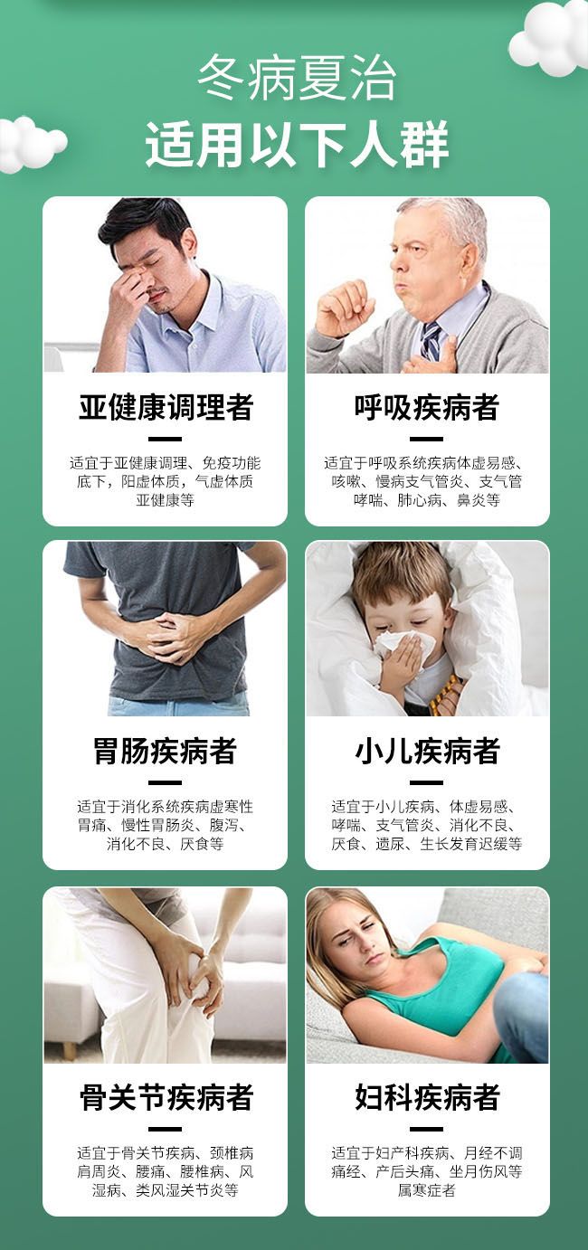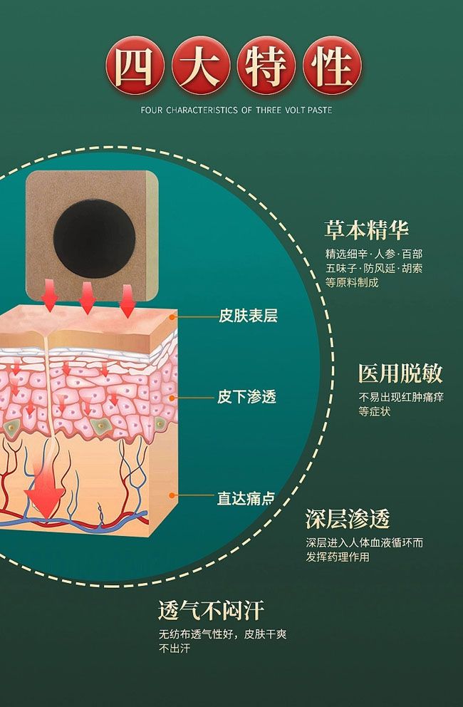 | 產品用途 | 三伏貼是在伏天時用于皮膚表面的藥物貼,對于慢性支氣管炎、哮喘以及過敏性鼻炎等呼吸系統(tǒng)方面的疾患有一定輔助治療效果。 |