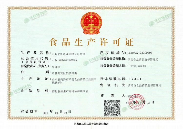 生產(chǎn)企業(yè): 山東朱氏藥業(yè)集團(tuán)有限公司