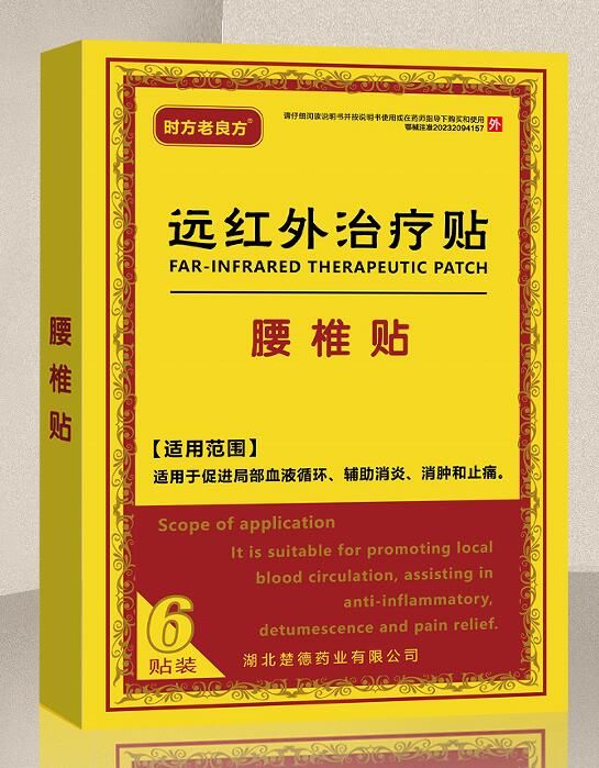 | 補(bǔ)充說明 | 【產(chǎn)品名稱】遠(yuǎn)紅外治療貼 【產(chǎn)品規(guī)格】90mm×120mm。 【產(chǎn)品型號(hào)】腰椎貼 【結(jié)構(gòu)及組成】由熱熔膠、遠(yuǎn)紅外陶瓷粉、背襯和防粘覆蓋紙組成。其中背襯為無(wú)紡布材質(zhì)。 【產(chǎn)品性能】本品遠(yuǎn)紅外法向發(fā)射率應(yīng)≥85%。 【適用范圍】適用于促進(jìn)局部血液循環(huán)、輔助消炎、消腫和止痛。 【使用方法】外用,將所貼部位皮膚清洗干凈,打開包裝,取出產(chǎn)品,揭去防粘紙,貼于患處。 【禁忌證】 1、有開放性傷口者禁用; 2、植入心臟起搏器及金屬異物局部禁用;嚴(yán)重心,肝,肺,腎衰竭患者禁用; 3、孕婦下腹部禁用,哺乳期婦女慎用; 4、出血及有出血傾向者禁用; 5、皮膚破損、皮膚病,對(duì)產(chǎn)品過敏者禁用; 6、體質(zhì)極度虛弱者禁用。 【注意事項(xiàng)】 1、本品為一次性使用,勿重復(fù)使用; 2、本產(chǎn)品為外用,禁止口服; 3、皮膚過敏者,如出現(xiàn)瘙癢、皮疹等,應(yīng)立即停止使用。 【貯藏及運(yùn)輸】密封、置室內(nèi)干燥處。包裝好的產(chǎn)品在運(yùn)輸過程中應(yīng)防曬,防潮,并**產(chǎn)品包裝在運(yùn)輸途中不受損壞。 【有效期】?jī)赡?br>【生產(chǎn)許可證編號(hào)】鄂藥監(jiān)械生產(chǎn)許20221170號(hào) 【醫(yī)療器械注冊(cè)證編號(hào)】鄂械注準(zhǔn)20232094157 【醫(yī)療器械產(chǎn)品技術(shù)要求編號(hào)】鄂械注準(zhǔn)20232094157 【注冊(cè)人/生產(chǎn)企業(yè)/售后服務(wù)單位】湖北楚德藥業(yè)有限公司 【注冊(cè)人住所】黃石市經(jīng)濟(jì)技術(shù)開發(fā)區(qū)金山大道189號(hào)B棟研發(fā)樓辦公201 【生產(chǎn)地址】湖北省黃石市經(jīng)濟(jì)技術(shù)開發(fā)區(qū)金山大道189號(hào)7號(hào)4樓 【聯(lián)系電話】 0714-8660120 13349828866 【說明書編制/修訂日期】2023年1月6日 |