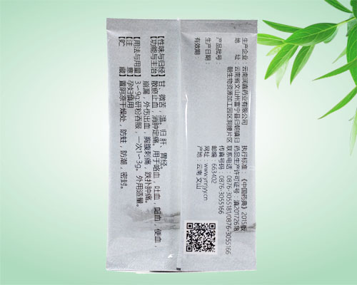 | 產(chǎn)品用途 | 散瘀止血,消腫定痛。用于咯血、吐血、衄學(xué)、便血、崩漏、外傷出血、胸腹刺痛、跌撲腫痛。 |