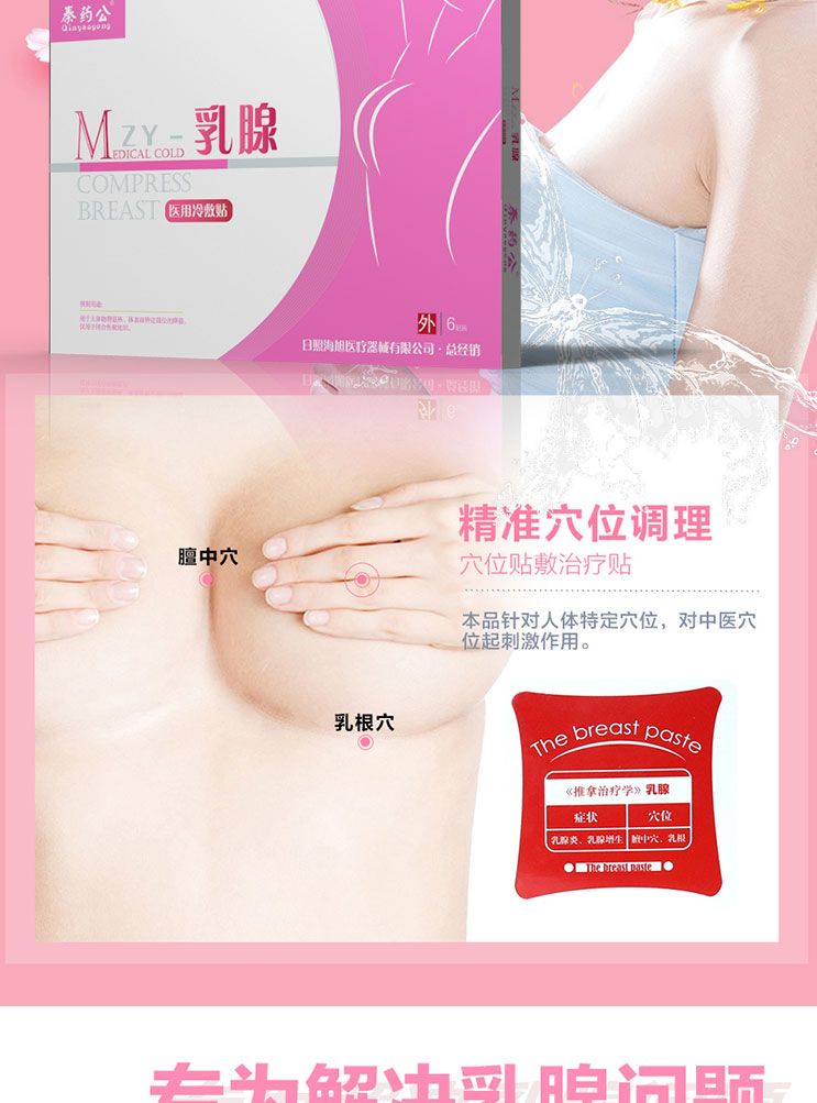 | 產(chǎn)品賣點(diǎn) | 乳腺貼可透過皮膚源源不斷的輸送進(jìn)肌理,直達(dá)病灶, |
