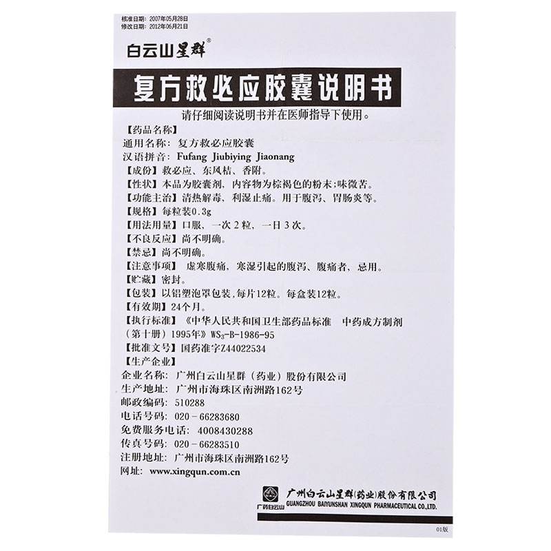 生產(chǎn)企業(yè): 廣州白云山星群(藥業(yè))股份有限公司