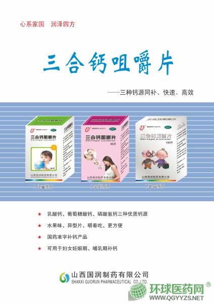 | 適應(yīng)癥 | 預(yù)防和治療鈣缺乏癥和補(bǔ)鈣,三鈣同補(bǔ)、快速、高效 |