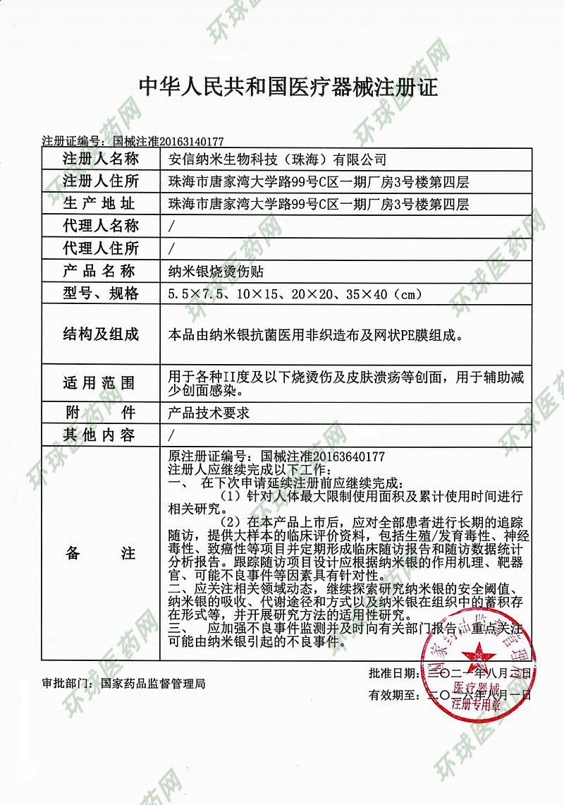 安信納米銀燒燙傷貼(三類醫(yī)療器械)