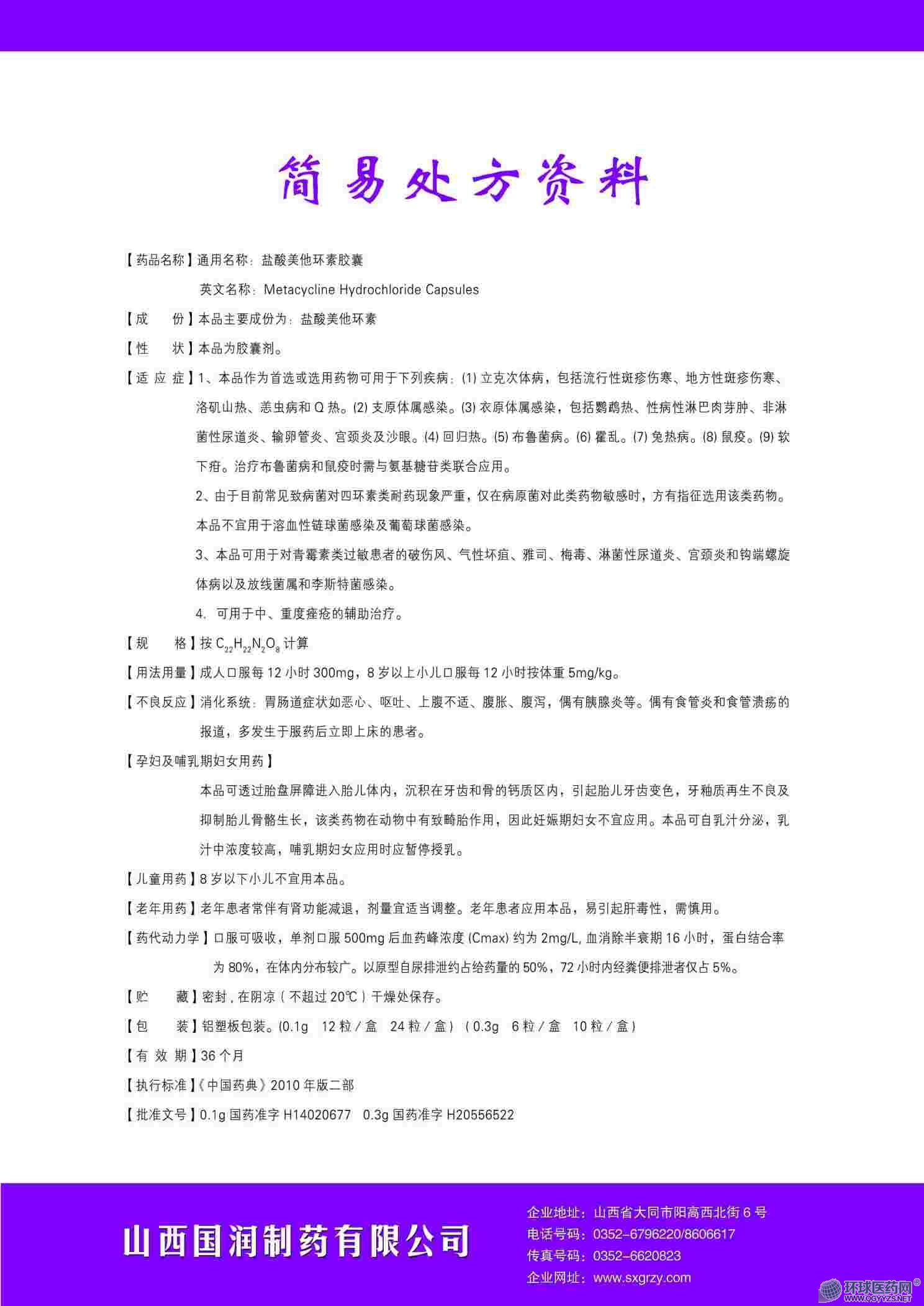 英文名稱:Metacycline Hydrochloride Capsules