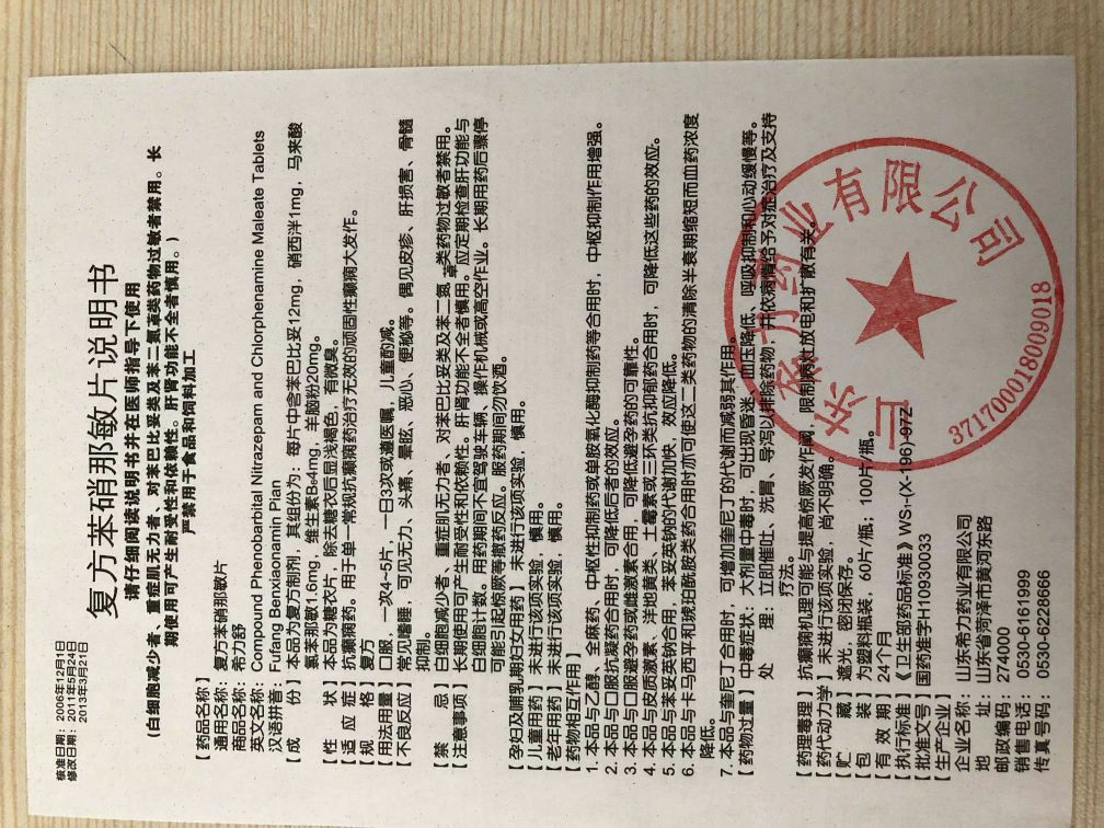 復(fù)方苯硝那敏片