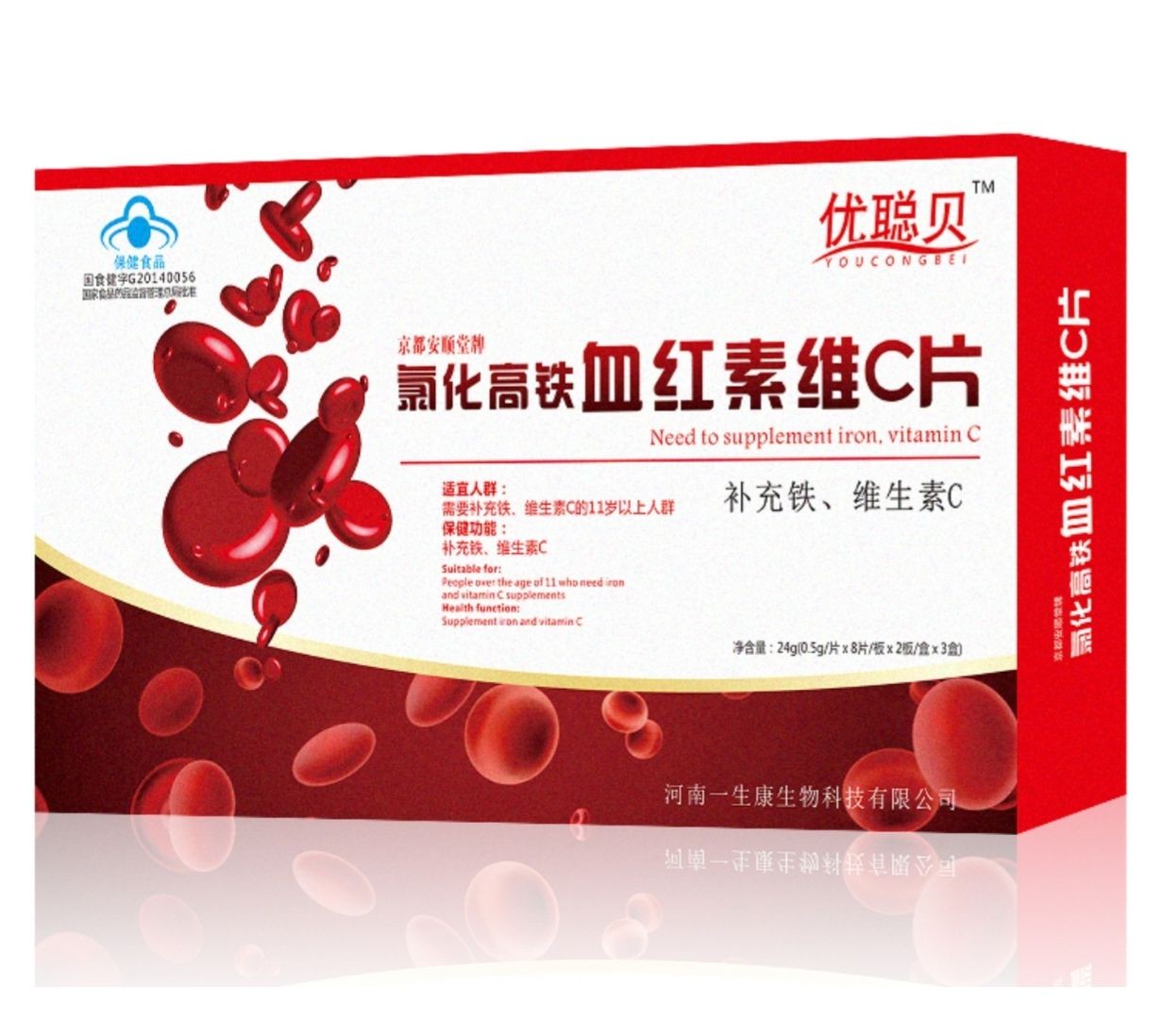 | 品牌名稱 | 優(yōu)聰貝牌氯化高鐵血紅素維C片 |