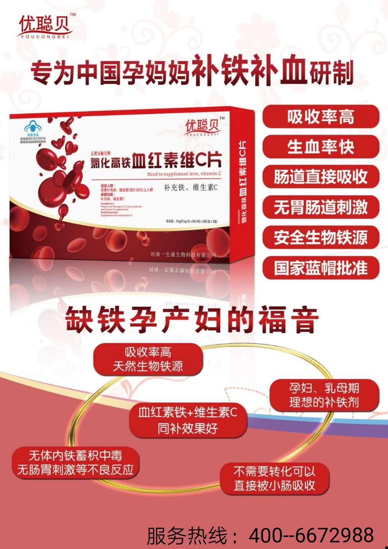 | 品牌名稱 | 優(yōu)聰貝血紅素維C片 |