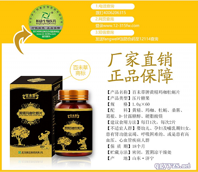 | 產(chǎn)品名稱 | 百未草牌黃精瑪咖牡蠣片 |