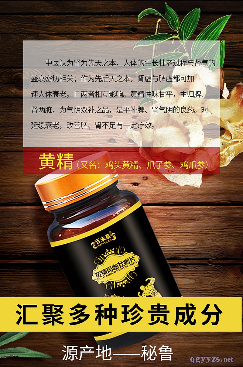 | 主要成分 | 人參(人工種植)、瑪咖、牡蠣、枸杞、桑葚、葛根、山藥、硬脂酸鎂 |
