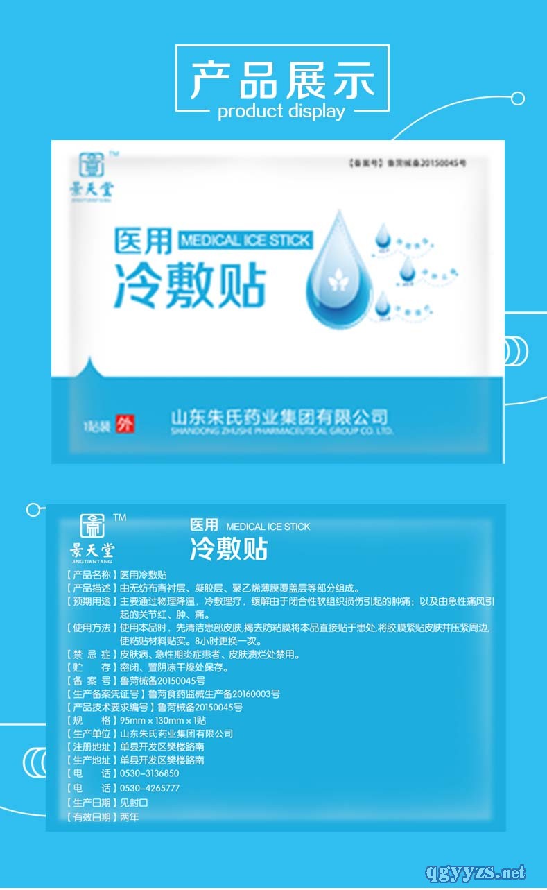 | 產(chǎn)品賣點(diǎn) | 主要通過物理降溫,冷敷理療,緩解由于閉合性軟組織損傷引起的腫痛;以及由急性痛風(fēng)引起的關(guān)節(jié)紅、腫、痛。 |