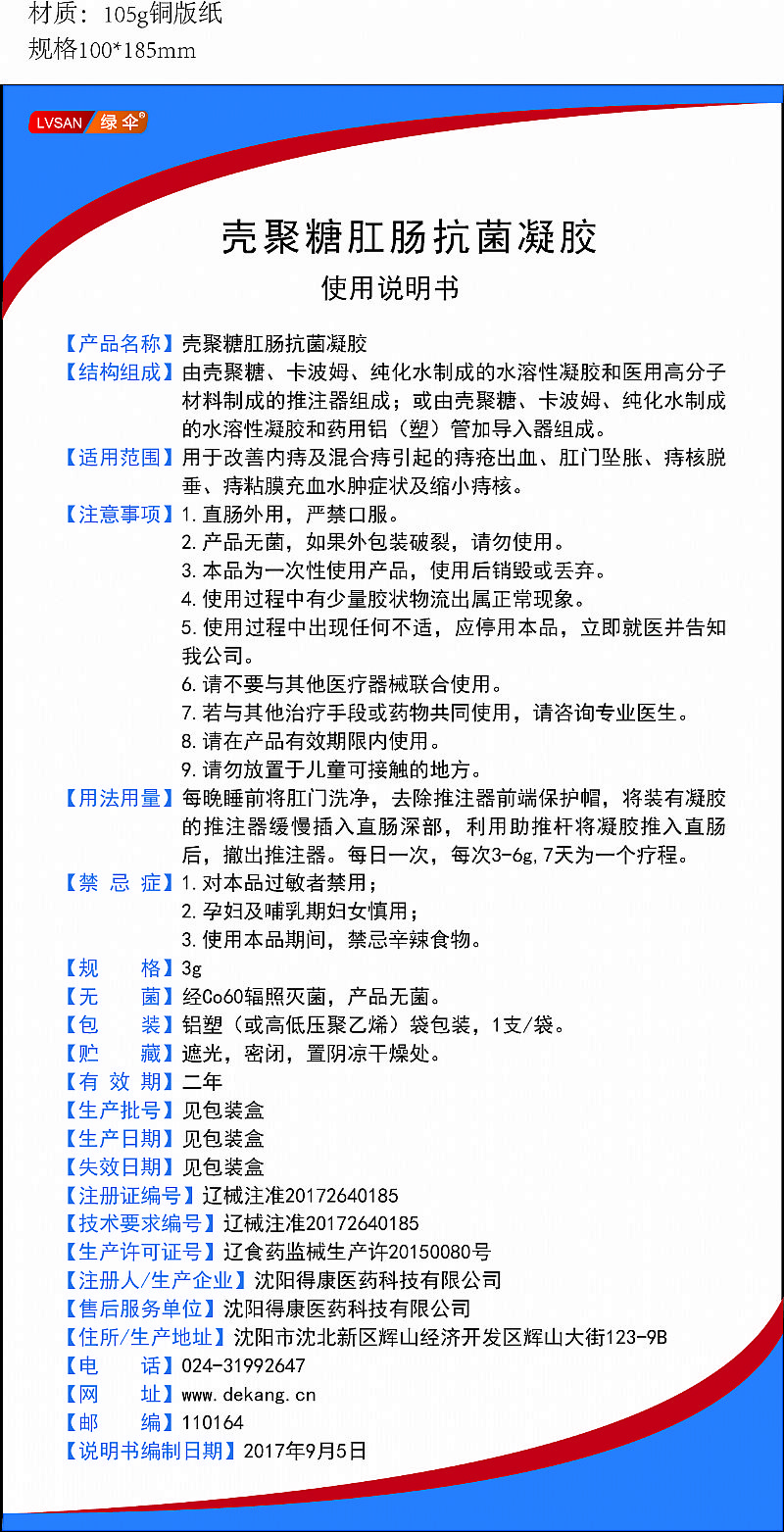 | 產(chǎn)品名稱 | 殼聚糖肛腸抗菌凝膠 |