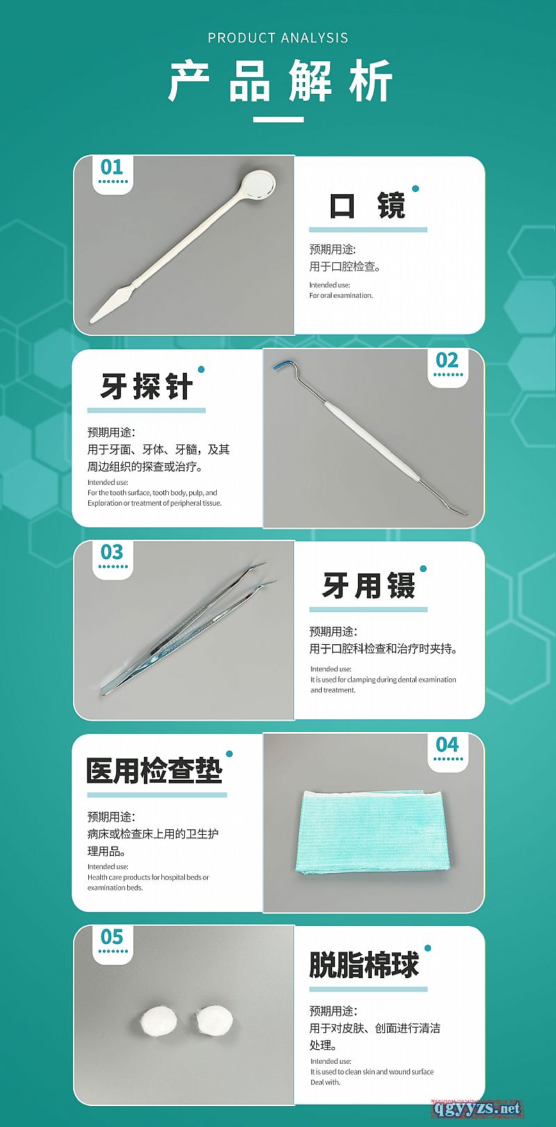 | 產(chǎn)品賣(mài)點(diǎn) | 口腔器械盒內(nèi)各器械的預(yù)期用途見(jiàn)附件一中各器械的預(yù)期用途。 |