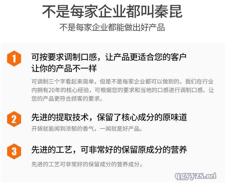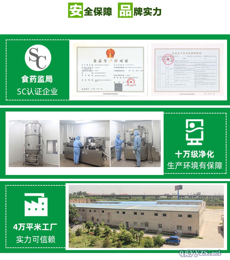 | 其它說明 | 一、戰(zhàn)略合作,值得依賴 公司自成立以來,立足于高新科技領(lǐng)域,利用已有的強(qiáng)大科研力量、健全的科研體系、現(xiàn)代化整合營銷管理方式以及龐大的市場(chǎng)營銷網(wǎng)絡(luò),形成了研發(fā)、生產(chǎn)、銷售為一體的現(xiàn)代化科技企業(yè) 二、標(biāo)準(zhǔn)生產(chǎn),雙認(rèn)證車間 **QS、十萬級(jí)GMP凈化車間雙認(rèn)證 先進(jìn)生產(chǎn)設(shè)備,引進(jìn)15種先進(jìn)生產(chǎn)加工設(shè)備,可生產(chǎn)固體飲料、壓片糖果、代用茶、含茶制品及茶葉分裝;膠囊、片劑、顆粒劑;中藥前處理;洗液、乳膏劑、凝膠劑、濕巾等多種品類。 標(biāo)準(zhǔn)化生產(chǎn)工藝流程,配備百余套模具,產(chǎn)品劑型和規(guī)格多樣化 更多產(chǎn)品開發(fā)定制及食品代加工服務(wù)咨詢,請(qǐng)致電:18291091111 三、嚴(yán)格把控質(zhì)量,4道檢驗(yàn),確保品質(zhì) **產(chǎn)品生產(chǎn)前原料都要通過多道檢驗(yàn) 包裝材料都需要經(jīng)過驗(yàn)收合格才能投入生產(chǎn) **半成品檢測(cè)合格后才可以進(jìn)入下一個(gè)生產(chǎn)環(huán)節(jié) **成品必須檢驗(yàn)合格才能出廠 四、服務(wù)周到,滿足不同市場(chǎng)需求,物超所值 從研發(fā)→配方設(shè)計(jì)→產(chǎn)品備案→生產(chǎn)加工→產(chǎn)品發(fā)貨 全程一對(duì)一跟進(jìn)服務(wù)及時(shí)準(zhǔn)確的交貨期,嚴(yán)格保密及客戶產(chǎn)品信息 五、口碑相傳,品牌影響力 20年**生產(chǎn)經(jīng)驗(yàn),客戶群遍及全國30多個(gè)省市,口碑相傳 強(qiáng)大的網(wǎng)絡(luò)發(fā)展平臺(tái),創(chuàng)造多元化的銷售渠道,提升影響力 六、我們—以質(zhì)量贏信任,以服務(wù)贏未來,全程給您**無憂服務(wù) *優(yōu)價(jià)格 高品質(zhì)加工、高效益產(chǎn)品、合理化價(jià)格,**客戶利益*大化 產(chǎn)品出貨后,如遇質(zhì)量問題免費(fèi)退換。 |