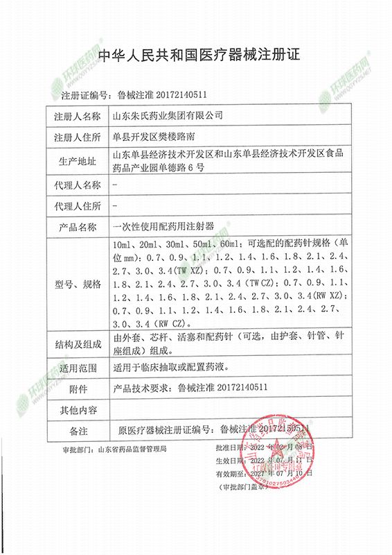 | 補(bǔ)充說明 | 型號(hào)規(guī)格:10ml 1支/袋*150支/盒*8盒/件;20ml 1支/袋*100支/盒*8盒/件;50ml 1支/袋*50支/盒*8盒/件 結(jié)構(gòu)組成:由外套、芯桿、活塞和配藥針(可選,由護(hù)套、針管、針座組成)組成。 產(chǎn)品特點(diǎn): 1、管壁清晰透亮易觀察,標(biāo)識(shí)清晰易讀數(shù)。 2、活塞頭與管壁貼合度高,與針頭接觸緊密不易漏液。 3、注射針頭采用精良不銹鋼斜口平整,刃角角度標(biāo)準(zhǔn)易穿刺,疼痛感小。 4、采用獨(dú)立包裝,經(jīng)環(huán)氧乙烷滅菌,無(wú)菌、無(wú)熱原。 |