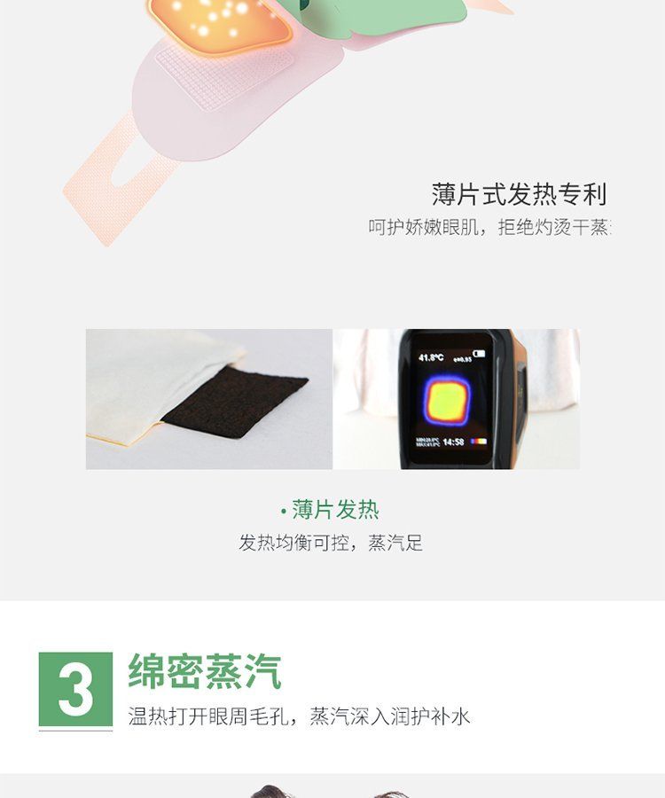 | 產(chǎn)品用途 | 適用于成人、青少年透過高級(jí)醫(yī)用無妨布均勻釋放出蒸汽,利用蒸汽的溫?zé)醽泶龠M(jìn)眼部血液微循環(huán),放松緊張的眼部肌肉,消除眼部的疲勞與不適。 |