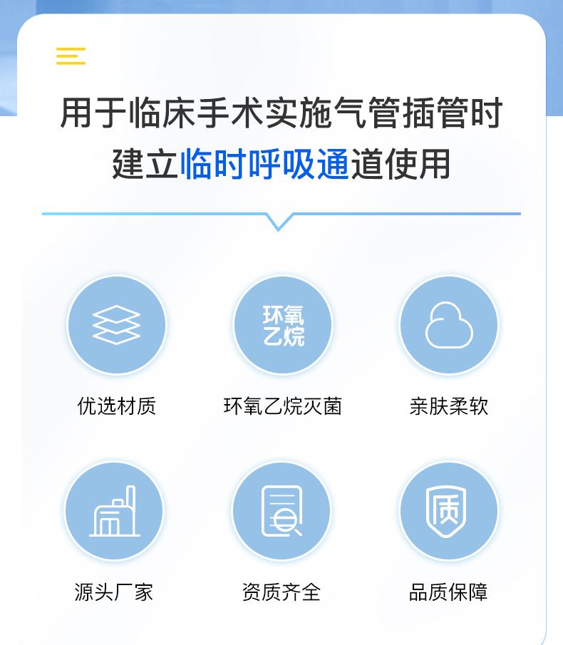 | 產(chǎn)品用途 | 供臨床麻醉或急救時建立人工氣道用。 |