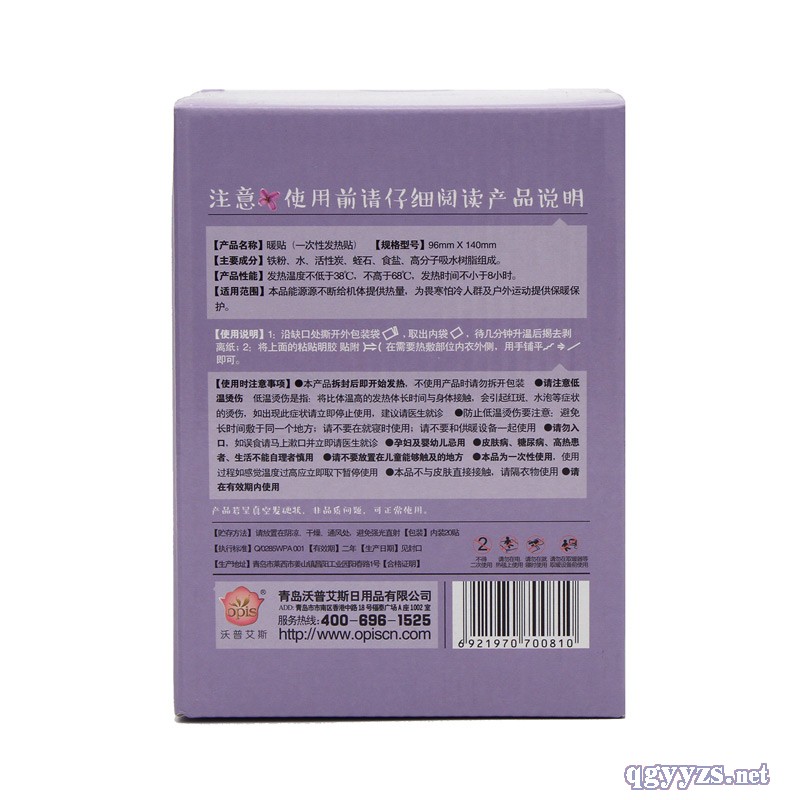 | 產(chǎn)品用途 | 本品能源源不斷給機(jī)體提供熱量,為畏寒怕冷女性提供溫暖保護(hù),本品不與皮膚直接接觸。 |