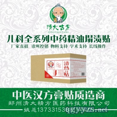 | 補充說明 | 清大古方系列中藥精油塌漬貼 一、微分態(tài),吸收快,作用迅速 清大古方精油塌漬貼是由純中藥提取物和中藥油制成,無輔料阻滯藥物吸收,如熱熔膠等,有效成分呈微分態(tài),更容易透皮 吸收; 二、含量高,更有效 清大古方精油塌漬貼每貼含中藥提取物和中藥油相當于原生藥材12-20克,含藥量高,更有效; 三、臨床經方,現(xiàn)代工藝,療效驗證,**有效 清大古方精油塌漬貼系有經多年臨床使用的經方及歷代中醫(yī)名家的經方,經過科研院校再研究的成果轉化產品,成品制劑中 充分利用如提取、低溫發(fā)酵等現(xiàn)代中藥制備技術,使藥物有效成分更易析出、滲透和吸收,在成方后和成品上市前,以臨床 制劑形式在多個三家兒童醫(yī)院應用,效果明顯,**有效,被廣大醫(yī)者好評。 四、經皮給藥,操作簡單,患兒適從性好 清大古方精油塌漬貼通過貼敷與特定穴位和部位,經皮給藥,直達病灶,作用迅速;不經口,無創(chuàng)給藥,更易被患兒接受; 不傷脾胃,不毒肝腎,更易于被患兒家長接受。 清大古方精油塌漬貼系中醫(yī)綠色療法,是國家大力倡導發(fā)展的方向。 六、包裝精美,自主設計,不妨不冒(歡迎同行模仿產品內在品質,鄙視抄襲外觀包裝);公司提供全套的物料支持; 七、固定層(膠布背托)采用德國進口的漢高油膠,自行涂制,不過敏、不脫落、透氣性好; 八、效果明顯(部分病癥可以達到一次見效),PS:我們只會務實的做品質,真實的宣傳及傳遞產品信息; 九、直接貼敷,貼敷穴位及方法便于掌握,不需要現(xiàn)場調制; 十、相應國家大力發(fā)展弘揚中醫(yī)中藥綠色療法的大政方針,限制抗生素、激素及化藥; 十二、公司提供全套產品物料,支持圓桌會、學術會; 鄭州清大精方醫(yī)藥科技有限公司;姚總13733153881(同微信) |