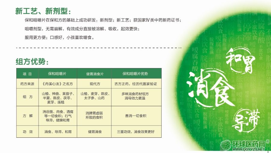 | 主要成分 | 山楂(焦)、六神曲(炒)、半夏(制)、茯苓、陳皮、連翹、萊菔子(炒)、麥芽(炒)。輔料為蔗糖、糊精、山梨醇、硬脂酸鎂。 |