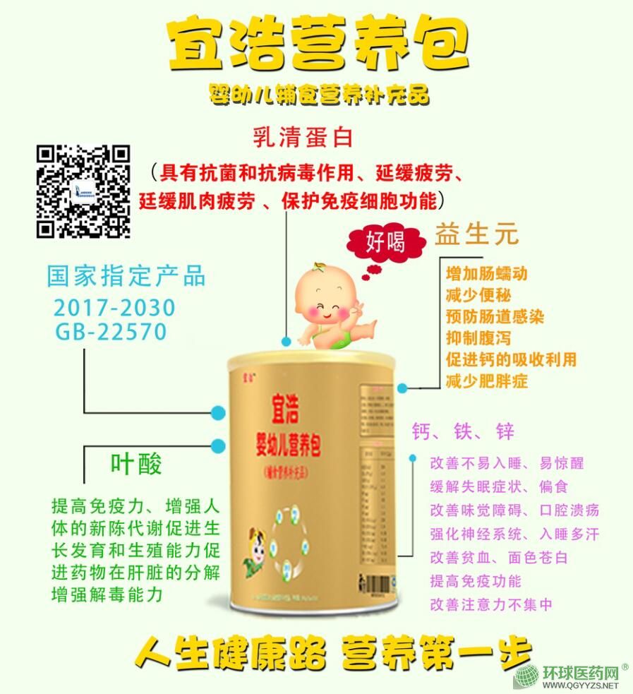 | 產(chǎn)品賣點 | 宜浩營養(yǎng)包是在6-60月齡(“關(guān)鍵窗口期”)的嬰幼兒輔食中添加的含高密度多種微量營養(yǎng)素(維生素和礦物質(zhì))的補(bǔ)充品,稱為“輔食營養(yǎng)補(bǔ)充品”,也叫“營養(yǎng)包”。營養(yǎng)包是市場上**一個能夠?qū)S糜趮胗變狠o食營養(yǎng)強(qiáng)化的合法產(chǎn)品。能夠滿足6-60月嬰幼兒每日50%-80%的營養(yǎng)所需。 |
