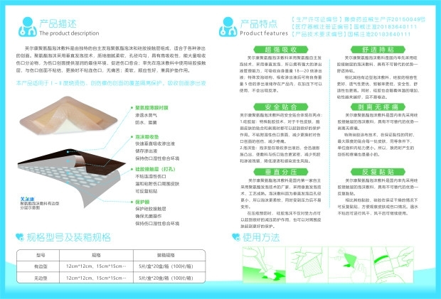 | 產(chǎn)品用途 | 各類高滲出液的傷口(下肢靜脈潰瘍,2至4期壓瘡,糖足潰瘍,供皮區(qū)傷口)應用及壓瘡的預防和治療。 |
