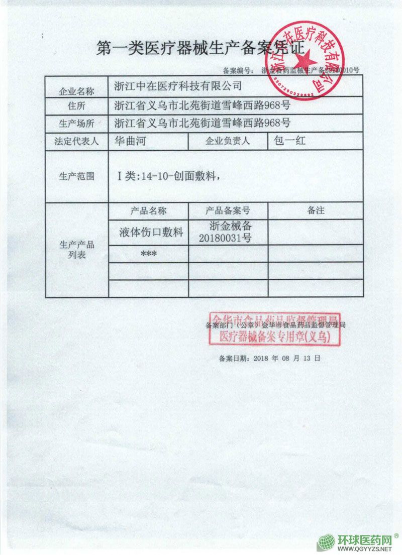 生產企業(yè): 浙江中在醫(yī)療科技有限公司
