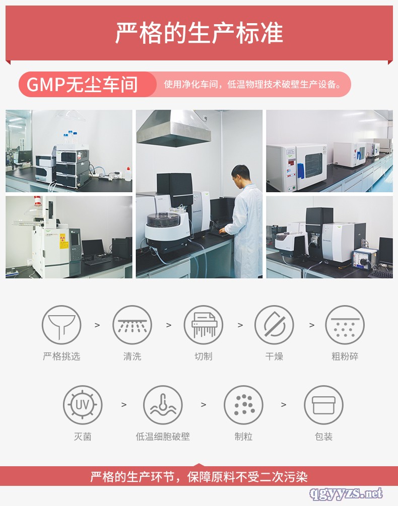 | 產(chǎn)品賣點(diǎn) | 低門檻貼牌代加工 1、通過低溫破壁技術(shù)確保細(xì)胞水溶性和脂溶性成分全保留。 2、細(xì)胞破壁粉進(jìn)入人體內(nèi)有效成分吸收率高。 3、采用微波低溫干燥滅菌技術(shù),不添加任 何輔料。 4、十萬級GMP車間生產(chǎn),無菌環(huán)境。 5、采用指紋圖譜技術(shù),全生產(chǎn)鏈控制產(chǎn)品質(zhì)量(即原料、中 間品、成品檢測),確保每批產(chǎn)品質(zhì)量均一、可控。 6、產(chǎn)品質(zhì)量控制指標(biāo)包括含量、重金屬、農(nóng)殘留物、二氧化 硫、黃曲霉毒素、微生物等檢測項(xiàng)目。 7、今典精方對細(xì)胞破壁粉的植物分子化學(xué)結(jié)構(gòu)進(jìn)行定性、 定量 8、今典精方制定細(xì)胞破壁粉重金屬檢測項(xiàng)目 細(xì)胞破壁粉重金屬檢測項(xiàng)目包括:銅(Cu)、鉛(Pb)、 鎘(Cd)、砷(As)、汞(Hg)。 9、今典精方制定細(xì)胞破壁粉農(nóng)藥殘留檢測項(xiàng)目 農(nóng)藥殘留檢測項(xiàng)目包括:滴滴涕、六六六、五氯硝基 苯、六氯苯、七氯、艾試劑、氯丹。 |