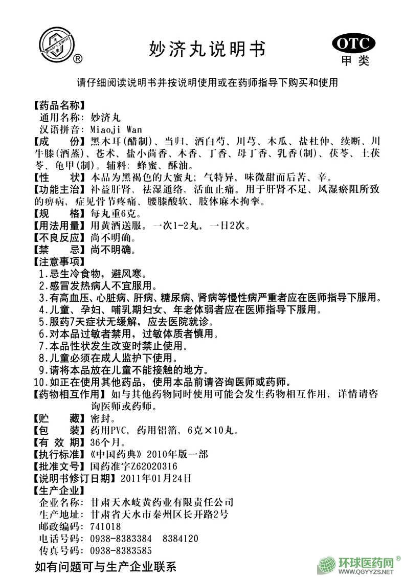 | 通用名稱 | 妙濟(jì)丸 |