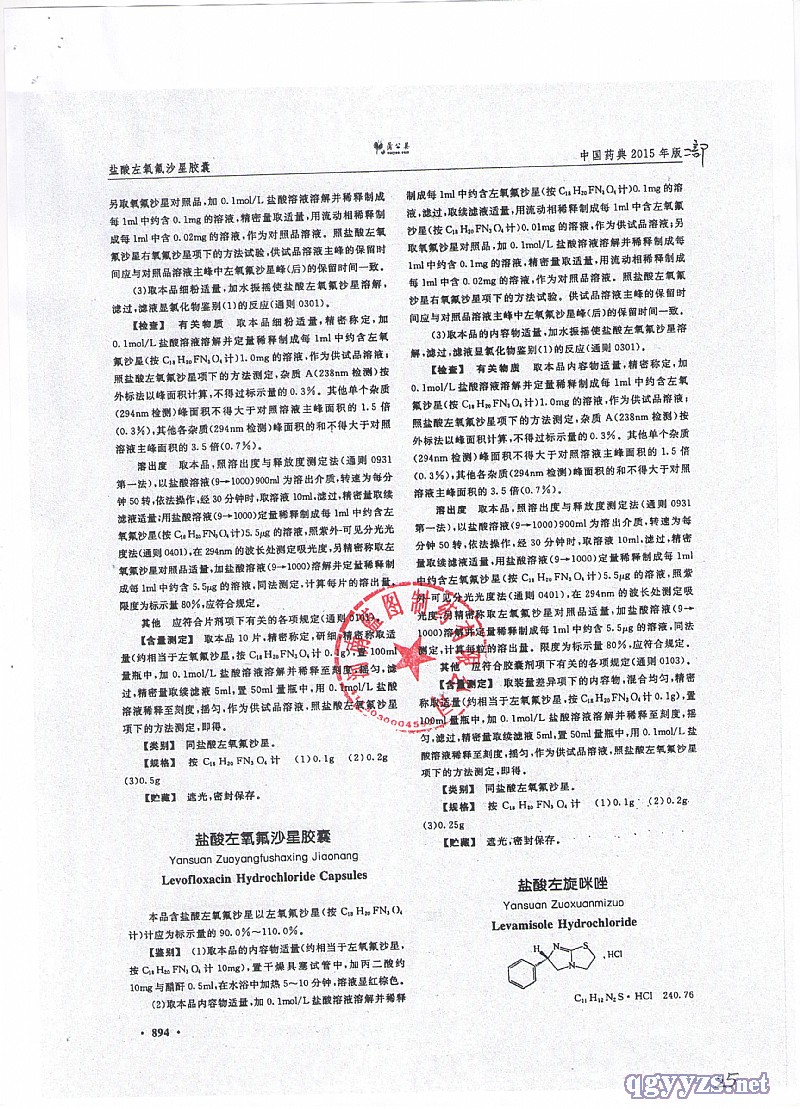 | 英文名稱 | Levofloxacin Hydrochloride Capsules |