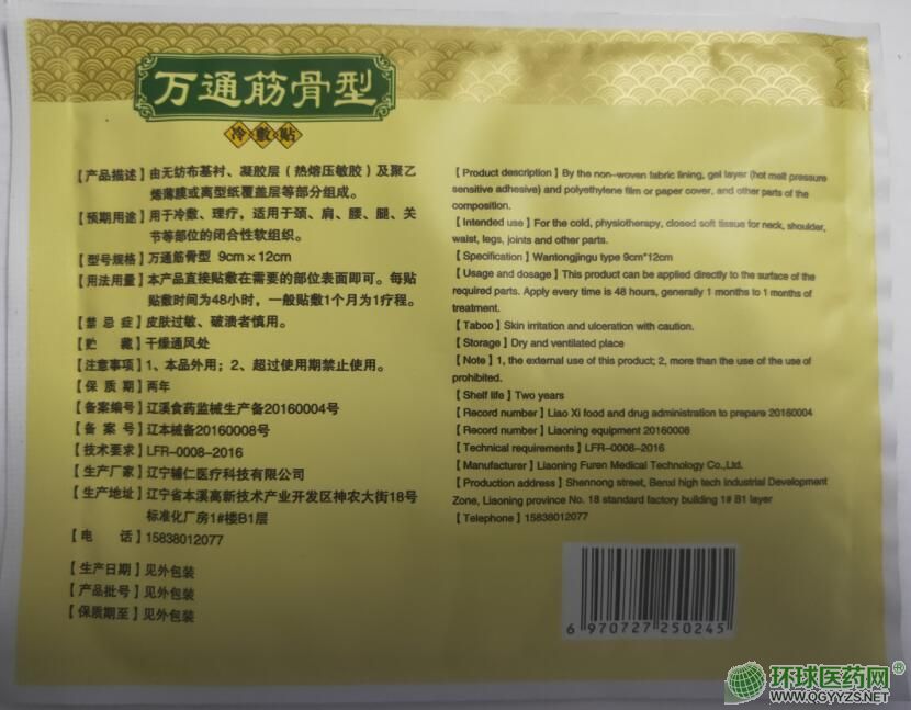 | 產(chǎn)品規(guī)格 | 萬通筋骨型 9cm*12cm |