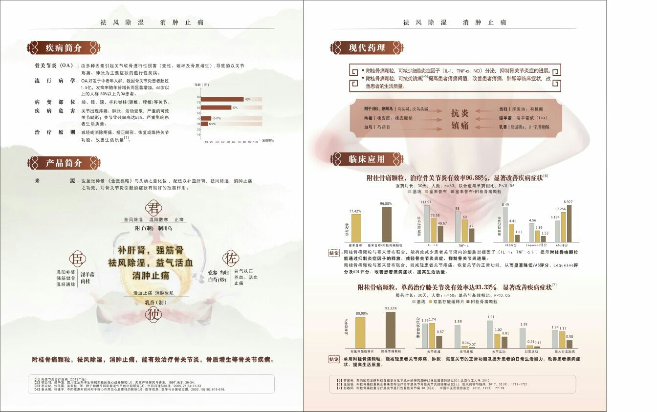 | 補(bǔ)充說(shuō)明 | 防治陽(yáng)虛寒濕型頸椎及膝關(guān)節(jié)增生性關(guān)節(jié)炎的純中藥制劑,可有效改善關(guān)節(jié)疼痛及腫脹。 |