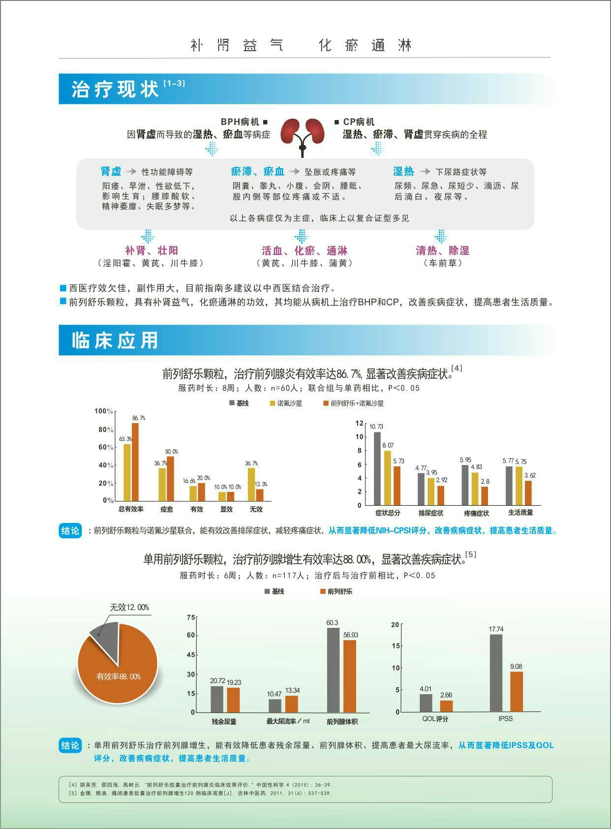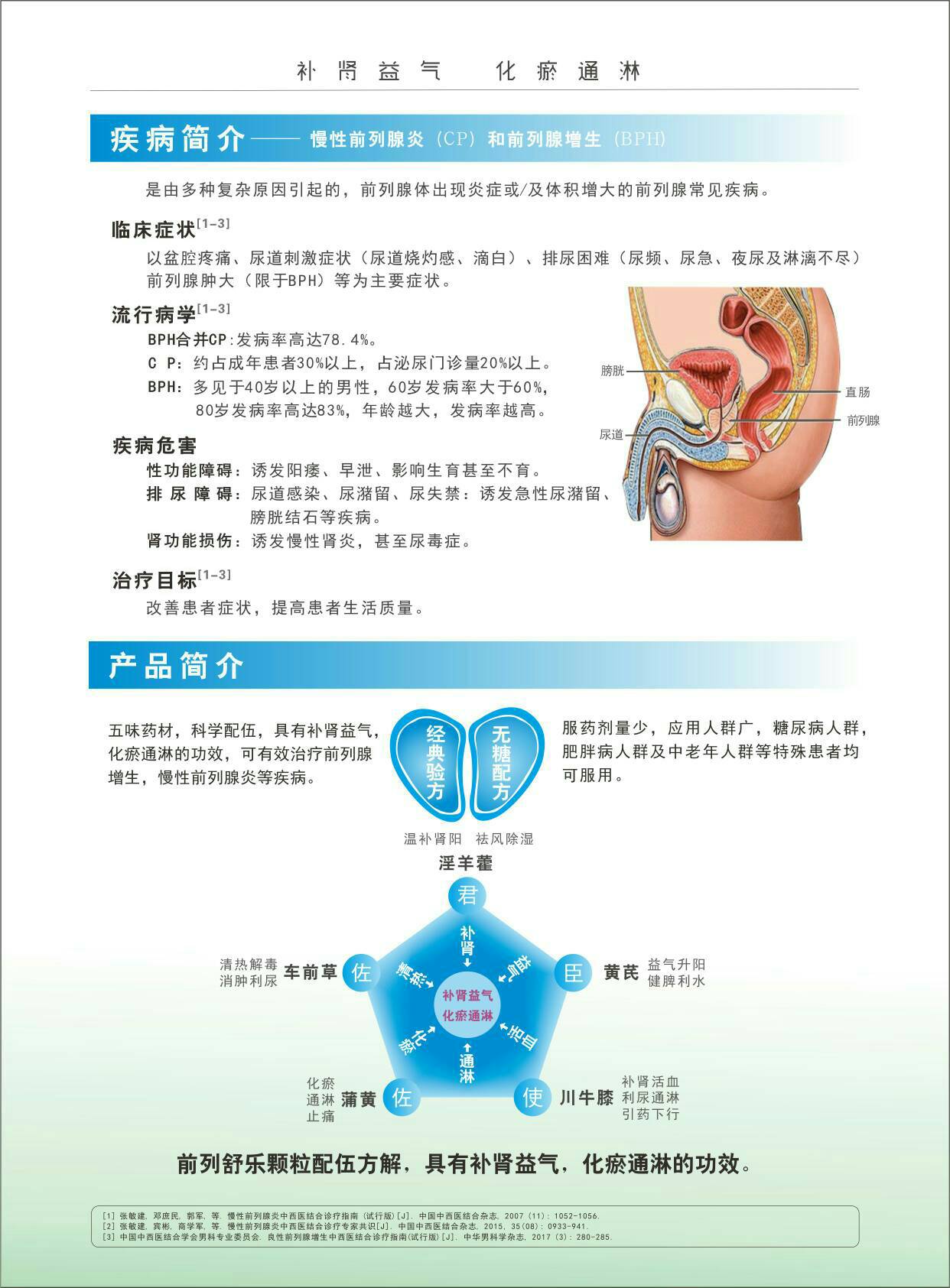 | 功能主治 | 補腎益氣,化瘀通淋。主治腎脾雙虛,氣滯血瘀,前列腺增生,慢性前列腺炎;面色晃白,神疲乏力,腰膝疲軟無力,小腹墜脹,小便不爽,點滴不出,或尿頻,尿急、尿道澀痛。 |